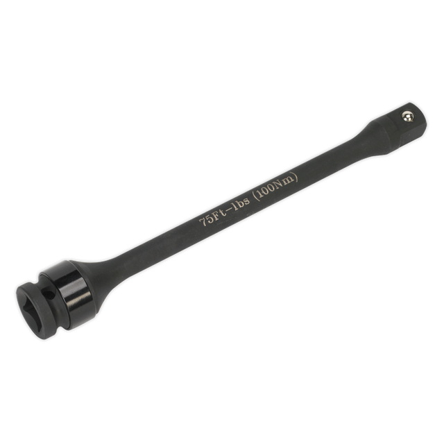 Chrome Molybdenum steel torque stick designed for use with air and electric impact wrenches. Prevents over-torque of wheel nuts. Anodised aluminium colour-coding for easy selection. Features a twist distortion marking for checking serviceability of tool.