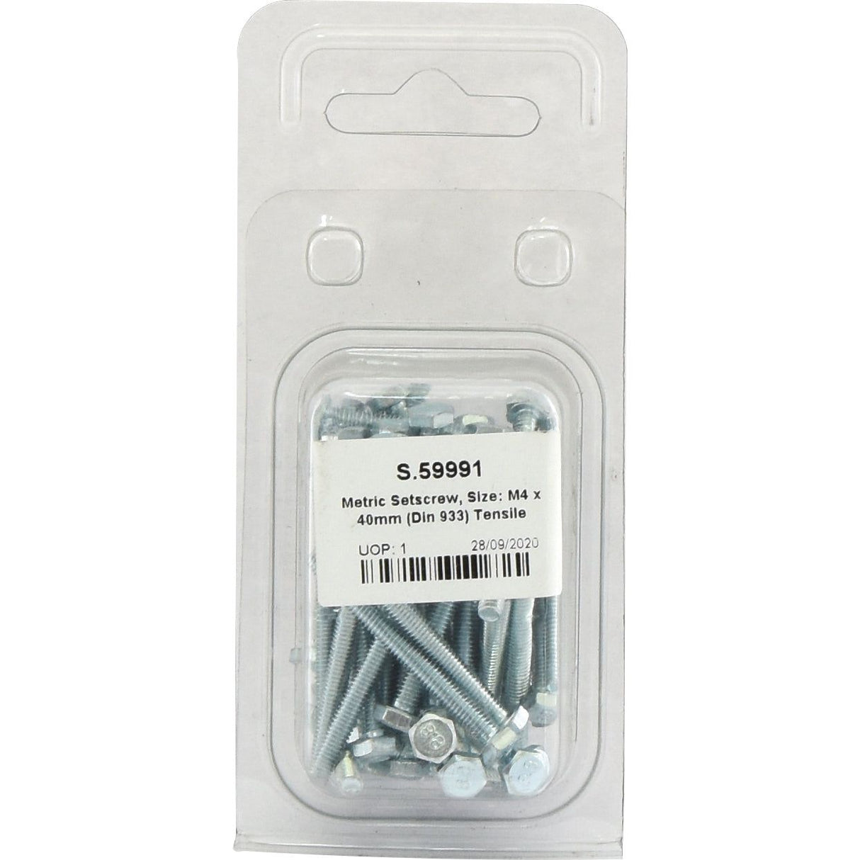 Metric Setscrew, M4x40mm (DIN 933) Tensile strength: 8.8. | Sparex Part No.S.59991 0.21 kg