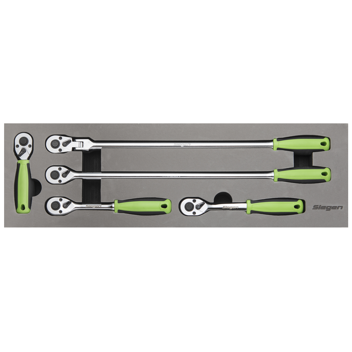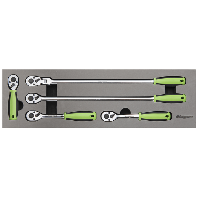 • Contents: Regular Ratchet Wrench, Offset Regular Ratchet Wrench, Stubby Ratchet Wrench, 457mm Extra-Long Ratchet Wrench, 457mm Extra-Long Flexi-Head Ratchet Wrench.