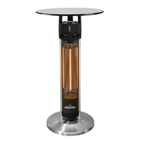 • Powerful garden bistro table with 1600W carbon fibre heating tube. Features handy LED light beneath glass tabletop.