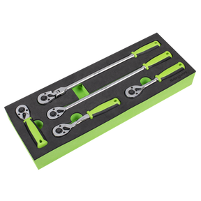 - Premium Chrome Vanadium steel construction ensures durability and longevity, making the Sealey Ratchet Wrench Set a reliable choice for professionals and DIY enthusiasts alike.