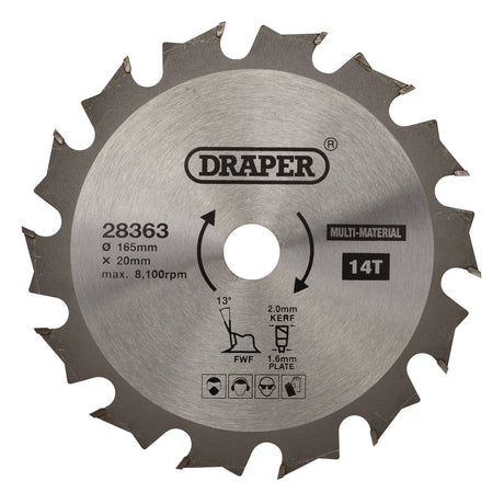 Draper Tct Multi-Purpose Circular Saw Blade, 165 X 20mm, 14T - SBM1