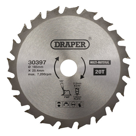 Draper Tct Multi-Purpose Circular Saw Blade, 185 X 25.4mm, 20T - SBM4