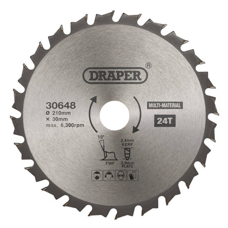 Draper Tct Multi-Purpose Circular Saw Blade, 210 X 30mm, 24T - SBM6