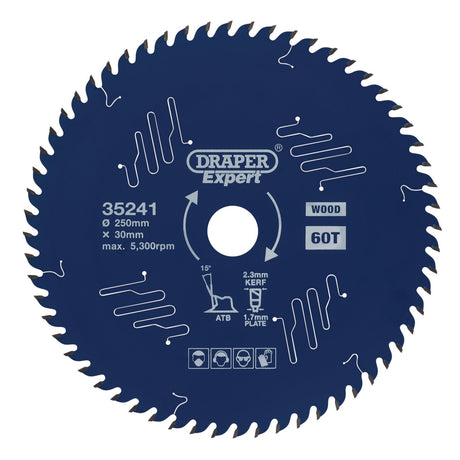 Draper Expert Tct Circular Saw Blade For Wood With Ptfe Coating, 250 X 30mm, 60T - SBE5