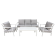 - Versatile 4-piece set includes a spacious 3-seater sofa, two stylish armchairs, and a sleek aluminium coffee table.
