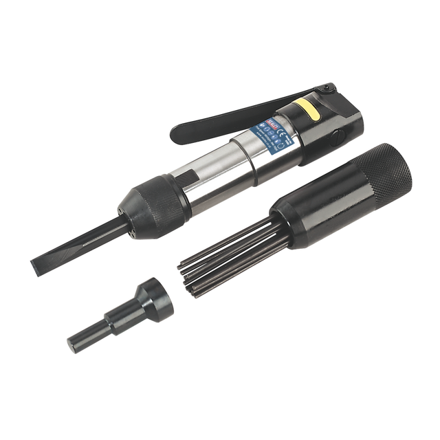 - Versatile straight type air hammer with interchangeable needle and chisel heads for enhanced functionality.