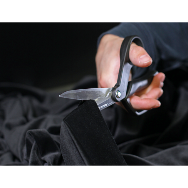 Manufactured from high quality stainless steel. Precision ground and hardened for a superior cutting edge with one serrated blade to reduce slippage. Ergonomic handles allow for both left and right-handed users. Suitable for cutting PVC, heavy cloth, rubber, rope, upholstery, leather, cardboard and many other materials.