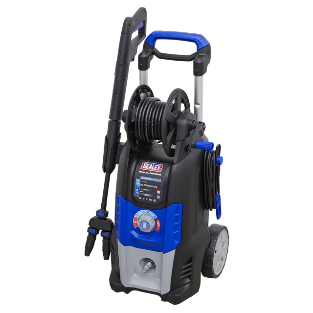 • Supplied with 8m high pressure hose and reel, Snow Foam Gun, 5m power cable and heavy-duty wheels.
