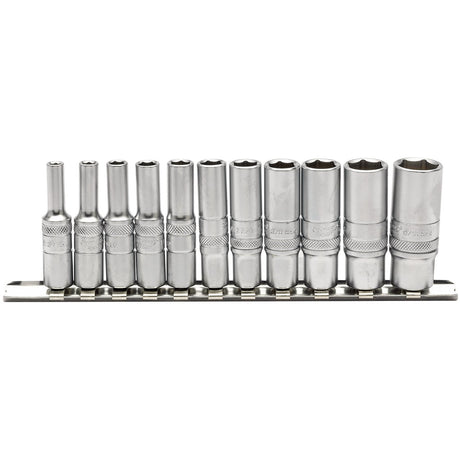 Draper Metric Deep Socket On Metal Rail, 1/4" Sq. Dr. (10 Piece) - BD10MMD