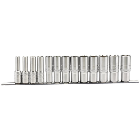 Draper Deep Metric Socket Set On A Metal Rail, 1/4" Sq. Dr. (13 Piece) - B13MD/SR