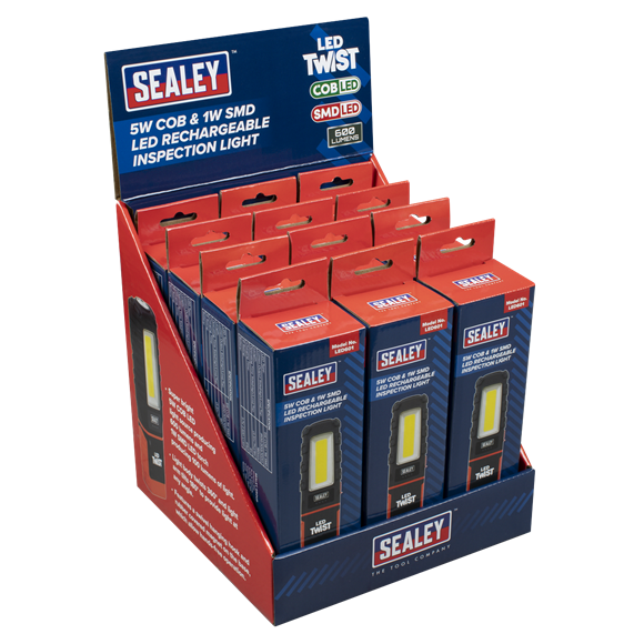 Sealey | LED Twist Rechargeable Inspection Light 5W COB & 1W SMD - Display Box of 12 - LED601DB 3.354 kg