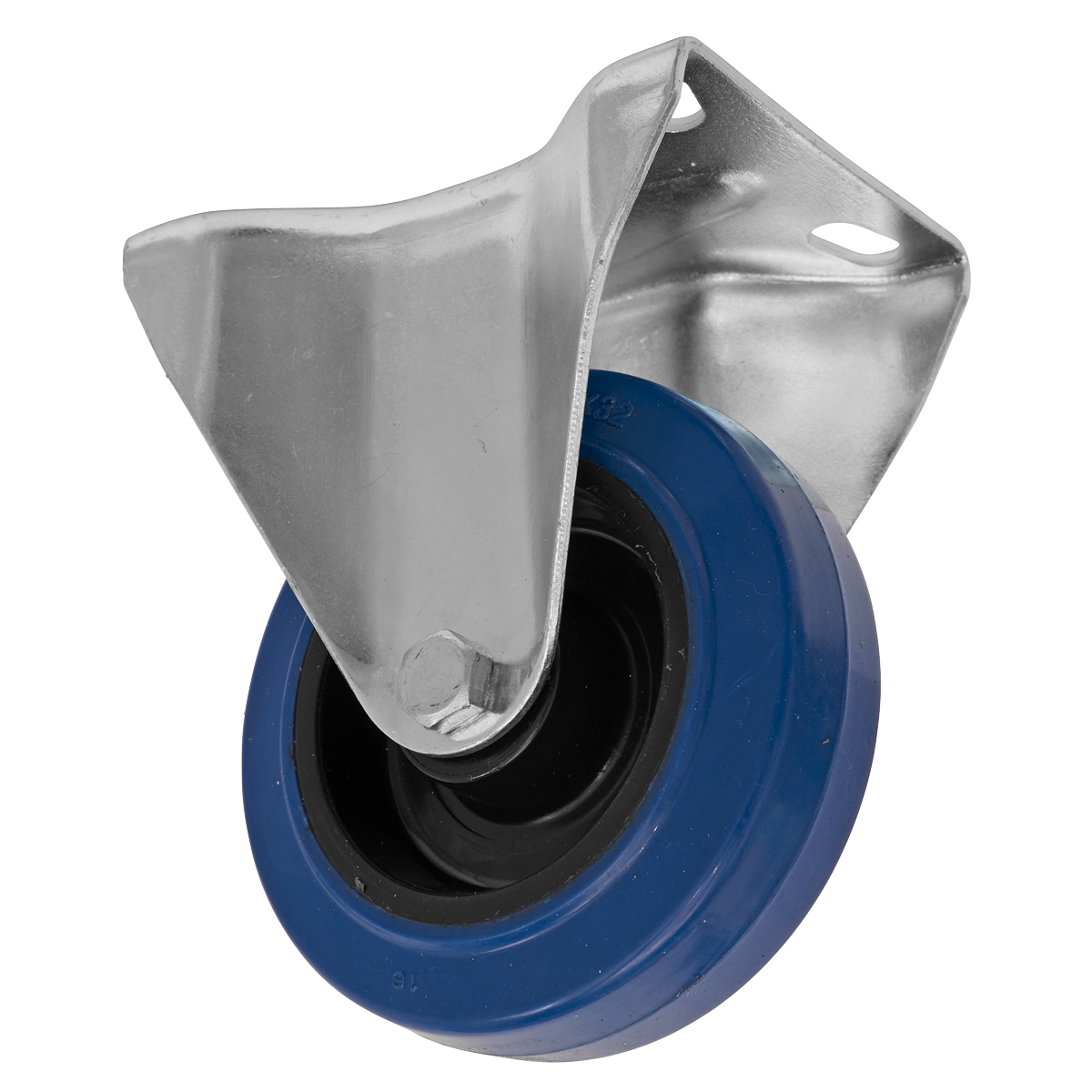 Heavy-Duty Blue Elastic Rubber Fixed Castor Wheel Ø100mm - Trade - SCW3100FPEM 0.612 kg