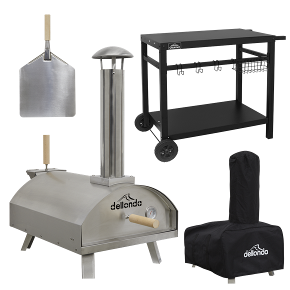 Sealey | Dellonda Wood-Fired Pizza Oven, Pizza Peel, Cover & Plancha Trolley 14" - Stainless Steel - DG259 32.3 kg