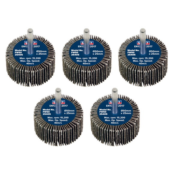Sealey | 50 x 25mm Abrasive Flap Wheel on 6mm Shaft 40Grit - Pack of 5 - FW5025405 0.253 kg