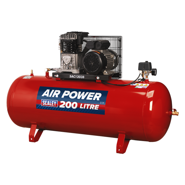 Air Compressor 200L Belt Drive 3hp with Cast Cylinders - SAC1203B 125.0 kg