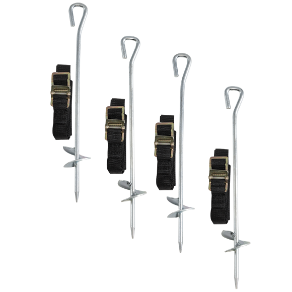 • KIT INCLUDES - Four spiral steel pegs and four adjustable safety straps.