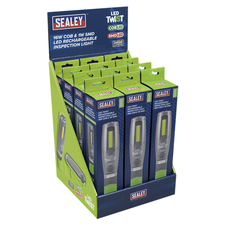 Sealey | LED Twist Rechargeable Inspection Light 16W COB & 1W SMD - Display Box of 12 - LED2001DB