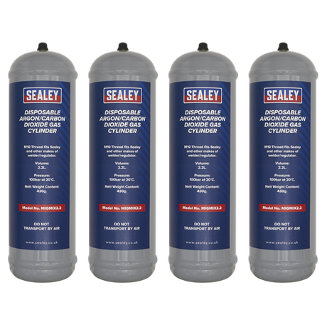Sealey | Disposable Argon/Carbon Dioxide Gas Cylinder 430g, 2.2L - Pack of 4 - MIGMIX2.24