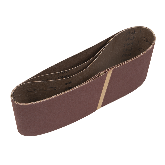 Hard-wearing sanding belt suitable for wood, paint, filler and metalwork applications. Ideal for quick stock removal and finishing with a strong cloth backing.