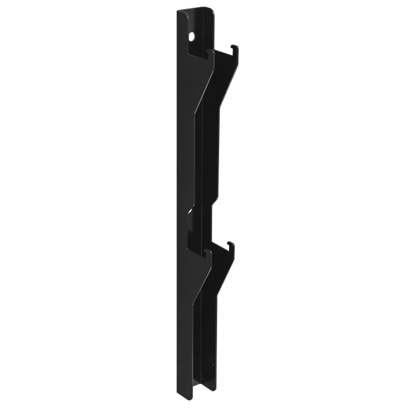Saves floor/cabinet space by enabling axle stands to be mounted securely to a wall. Axle stands are held firm horizontally by hooking onto cross brace, without the risk of falling. Supplied with wall mounting fasteners. Suitable for Sealey and other brands of axle stands.