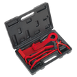 Manufactured from glass reinforced nylon to minimize panel damage and marking. Includes five trim and upholstery tools, plus trim clip removal pliers with spring loaded handles. Supplied in storage case.