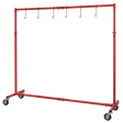 Adjustable height from 1.3m to 1.95m. Six hooks with a combined capacity of 75kg for hanging small parts. Suitable for hanging bumpers, bonnets, doors, wings and spoilers. Fitted with four castors, two with brakes for maximum manoeuvrability and safe positioning.