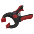 Quick ratcheting clamp with easy release trigger. Manufactured with a nylon body, TPR handle and textured pads. Free-moving pads enable clamping at multiple angles. Features maximum jaw opening of 45mm.