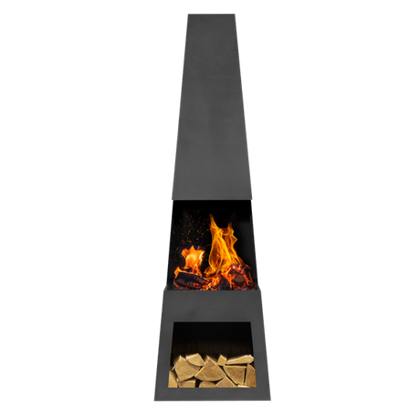 Sealey | Dellonda Outdoor Chiminea Fireplace Fire Pit Heater Firewood Storage Black Steel - DG107