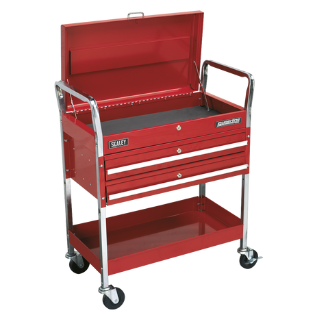 Heavy-Duty Mobile Tool & Parts Trolley 2 Drawers & Lockable Top - Red - AP760M
