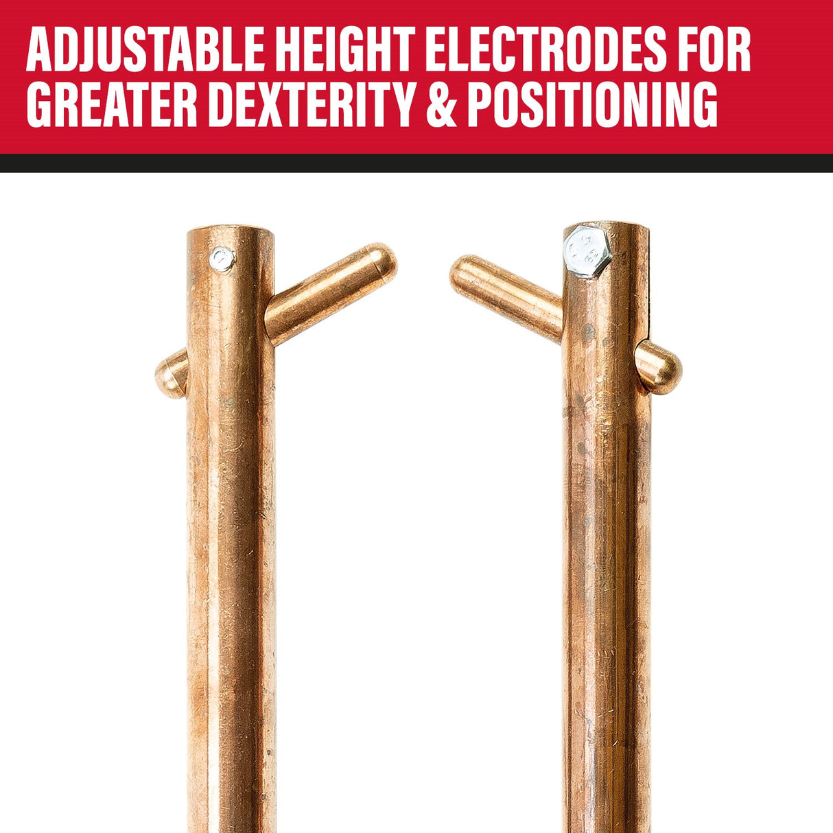 • Copper/chrome alloy electrode arms (⌀ 20mm x 120mm and 350mm length)