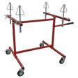 Will take four alloy wheels and enable the user to rotate the wheels on cones so the wheels can be repaired or painted without the need to lift and reposition them. Both supporting bars and cones have adjustable heights in order to provide the most comfortable position to the user. Fitted with four castors, two with brakes for maximum manoeuvrability and safe positioning.