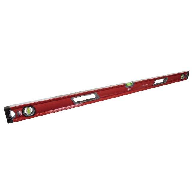 1mm Aluminium box beam section level. Powder coated for corrosion resistance. Accuracy 1mm in 1m (0.057°). Model includes UV resistant and shockproof vials, one horizontal with side view, one vertical and one 45°. Precision milled face on top and bottom.