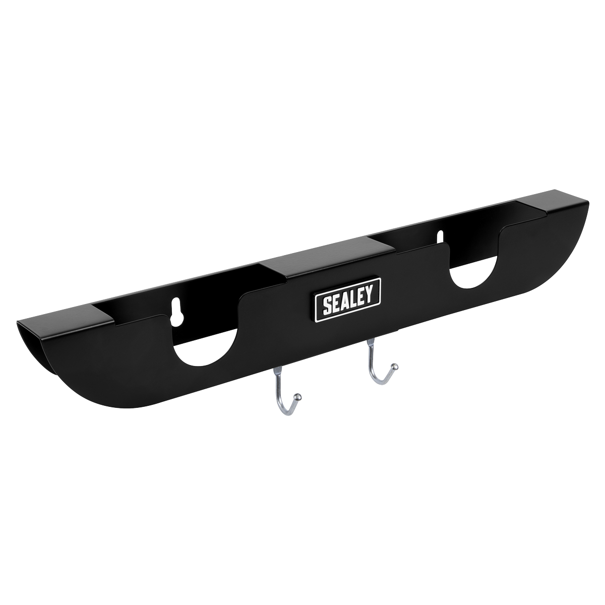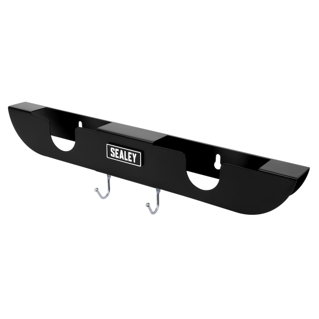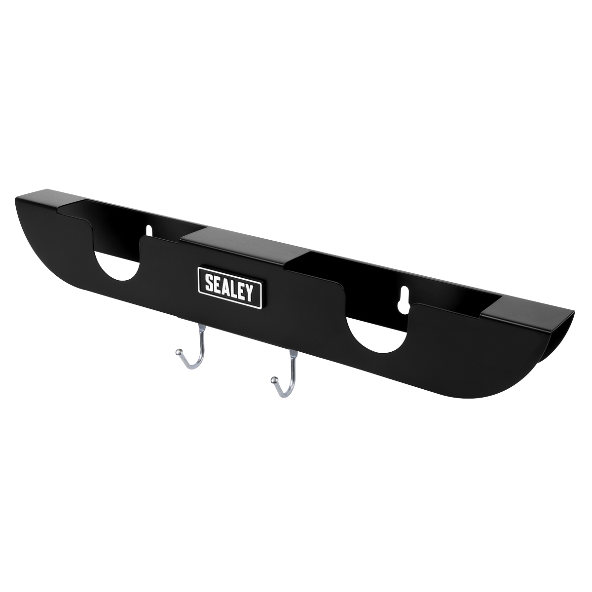 Wall mounting rack specifically designed for the storage of angle grinders. Left slot can take up to 150mm angle grinders whilst right can take 180mm angle grinder. Fitted with hooks to keep wires out of the way.