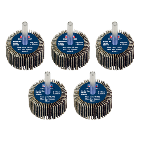 Sealey | 80 x 40mm Abrasive Flap Wheel on 6mm Shaft 40Grit - Pack of 5 - FW8040405