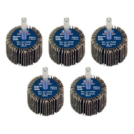 Sealey | 40 x 30mm Abrasive Flap Wheel on 6mm Shaft 40Grit - Pack of 5 - FW4030405