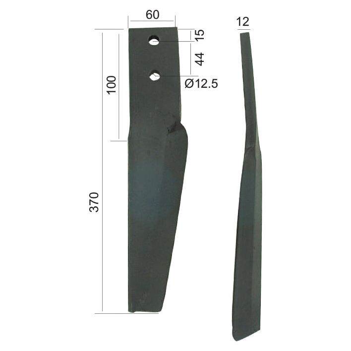 Power Harrow Blade 60x12x370mm RH. Hole centres: 44mm. Hole Ø 12.5mm. Replacement for Maschio. To fit as: 10100266 | Sparex Part No.S.77278 1.49 kg
