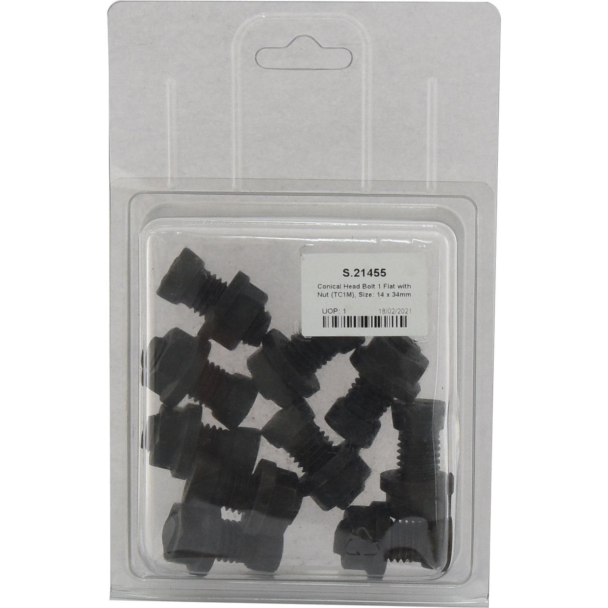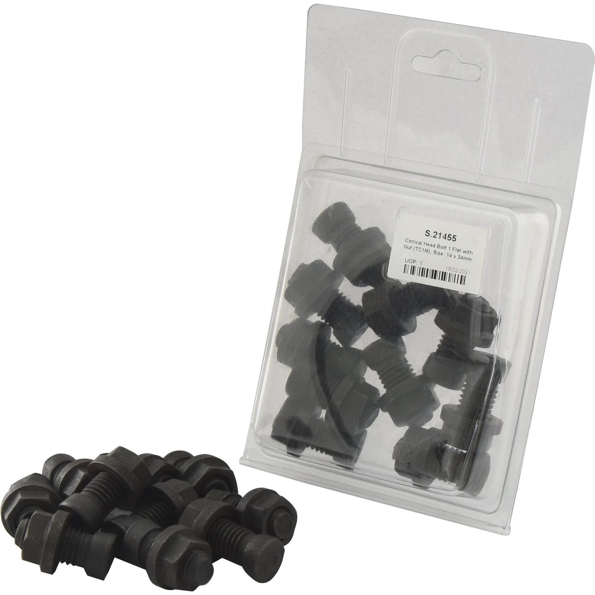 Conical Head Bolt 1 Flat with Nut (TC1M), M14x34mm (10 pcs. Agripak) | Sparex Part No. S.21455