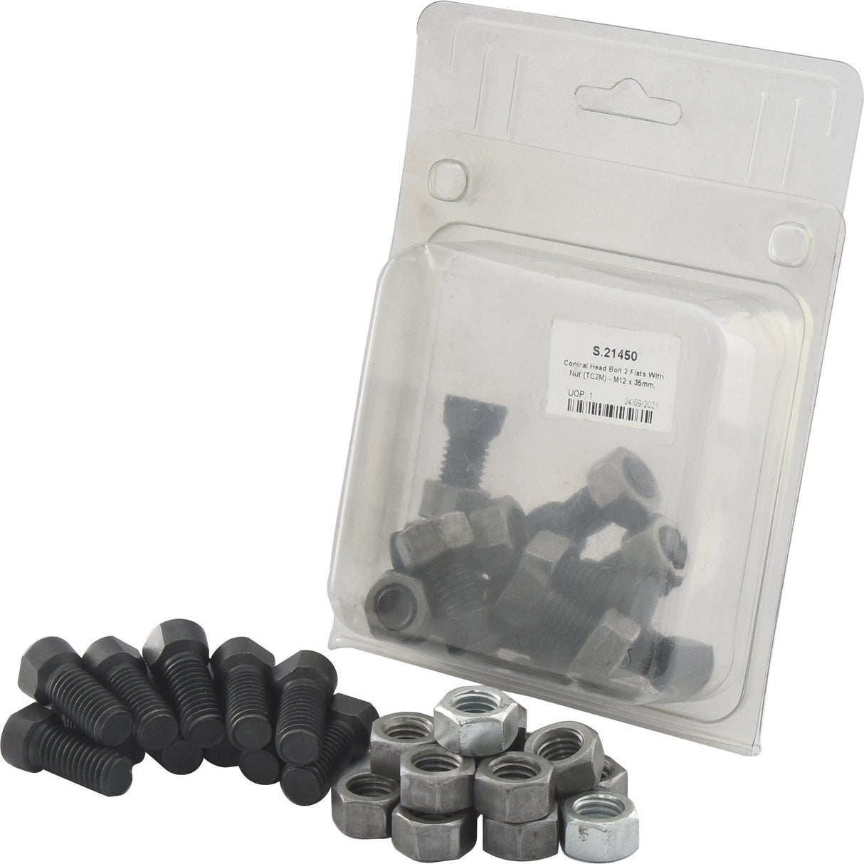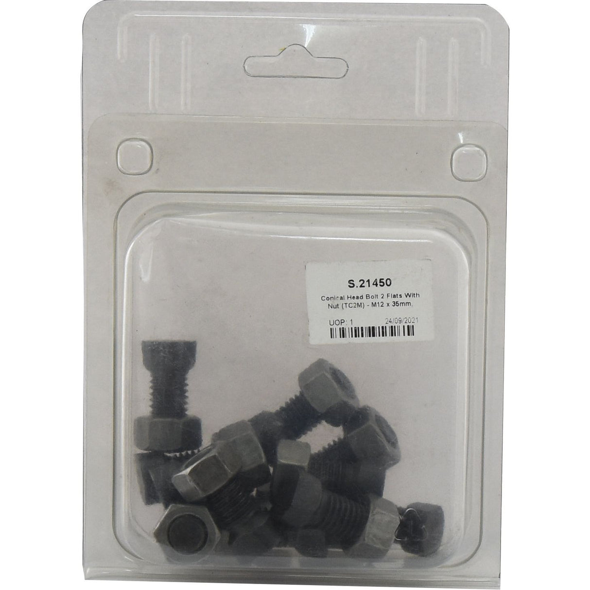 Conical Head Bolt 2 Flats With Nut (TC2M) - M12x35mm, Tensile strength 12.9 (12 pcs. Agripak) | Sparex Part No.S.21450 0.68 kg