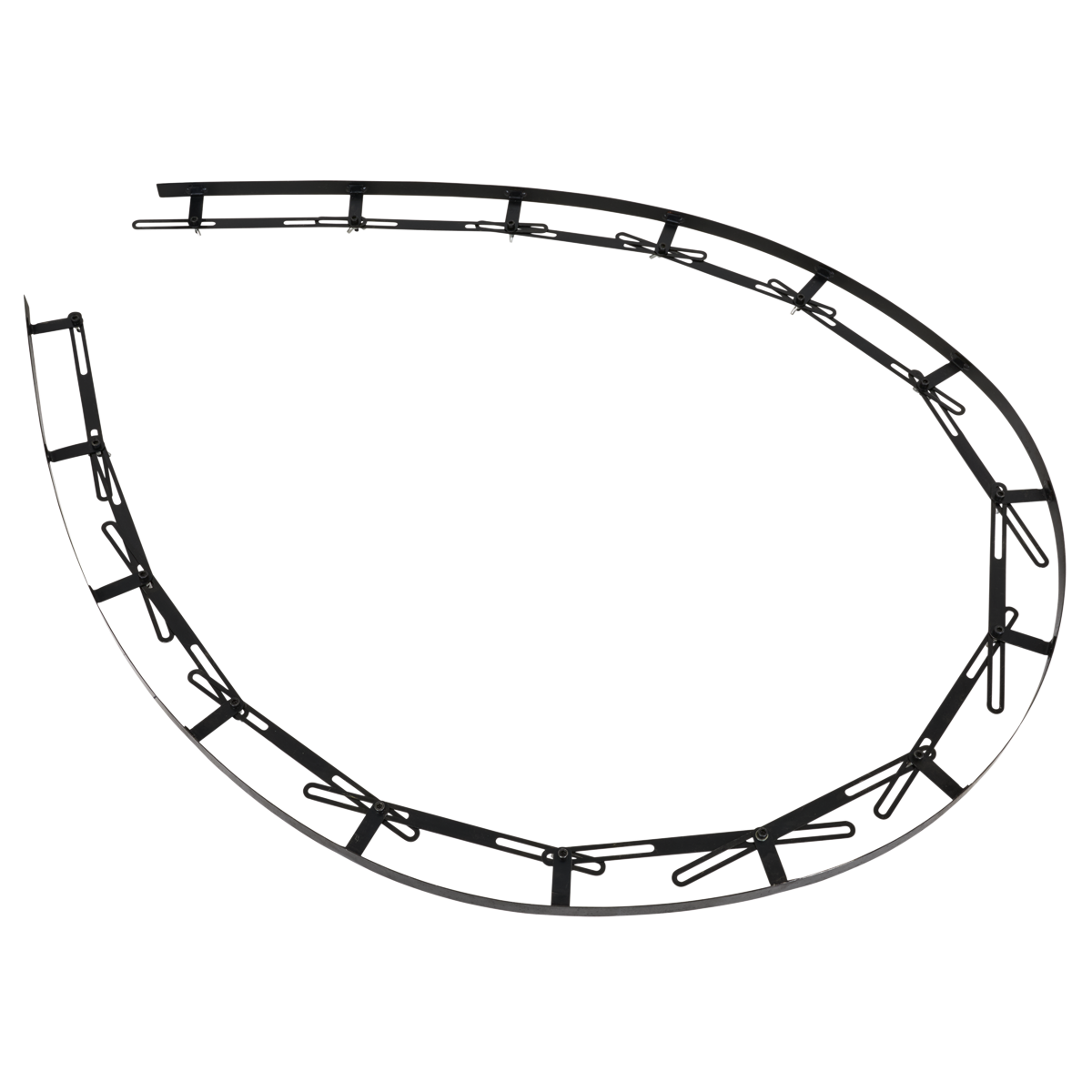 Curve template for transferring exact curves for precise duplication in metal, wood, leather, and fabric applications. Ideal for replicating both simple and complex curves on various body shop materials, including auto body panels. Adjustable locking mechanisms for exact curve reproduction, providing maximum accuracy. Constructed with durable materials, including metal to ensure maximum durability and longevity in workshop environments. Featuring a highly flexible spring steel face, it allows for easy, quick, and precise shape transfer across a wide range of projects.