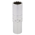 Expert Quality, 12 point deep socket manufactured from chrome vanadium steel that's hardened and tempered with a polished finish. Each socket has a knurled ring for extra grip.