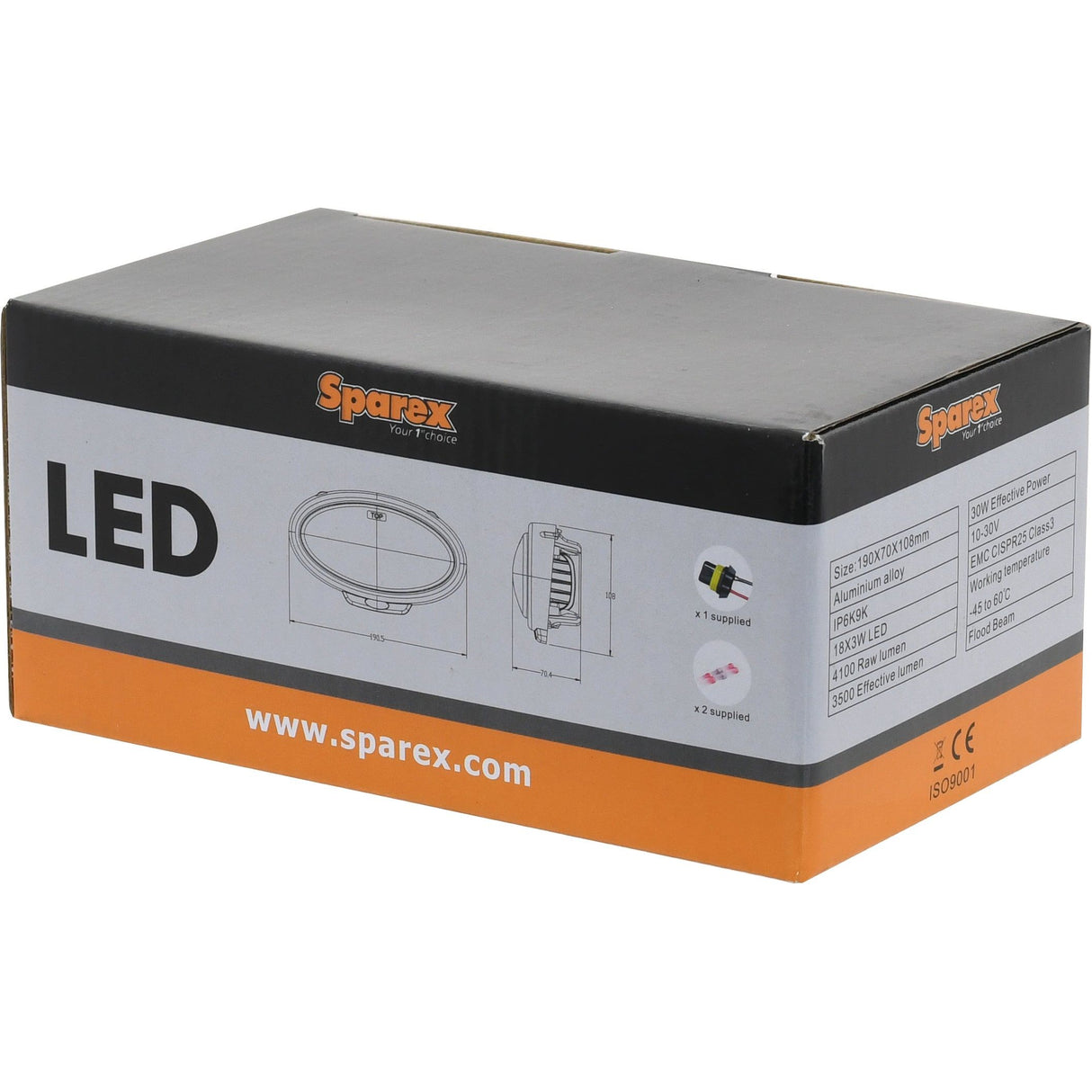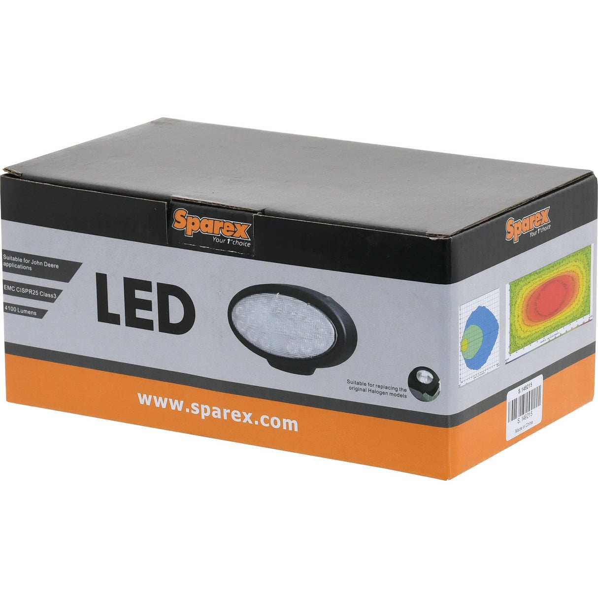 This Sparex LED work light is a powerful and durable solution for illuminating your John Deere tractor or machinery. With a raw lumen output of 4100 and a wide 160° flood beam, this light provides excellent visibility in any working environment. It's designed for demanding applications and features a robust aluminum housing, IP69K rating for water and dust resistance, and a working temperature range of -45°C to 60°C.