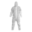 100% Polypropylene. Elasticated hood, cuffs and ankles. Offers protection in a range of environments.