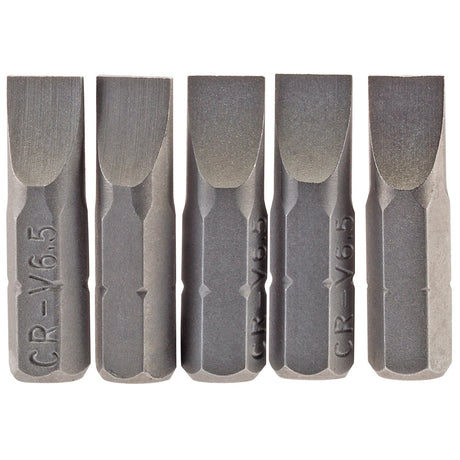 Draper Plain Slot Insert Bit, 6.5mm, 1/4" Hex, 25mm Long (Pack Of 5) - 25PS/5/B