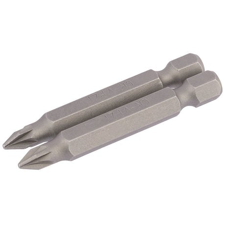 Draper Pz Type Insert Bit, 1/4" Hex, 50mm Long, No.2 (Pack Of 2) - 50PZ/2/B