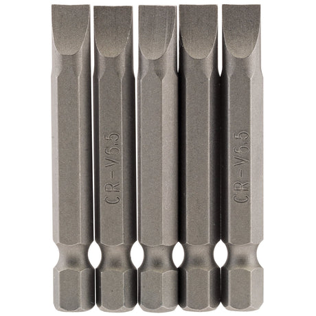 Draper Plain Slot Insert Bit, 6.5mm, 1/4" Hex, 50mm Long (Pack Of 5) - 50PS/5/B