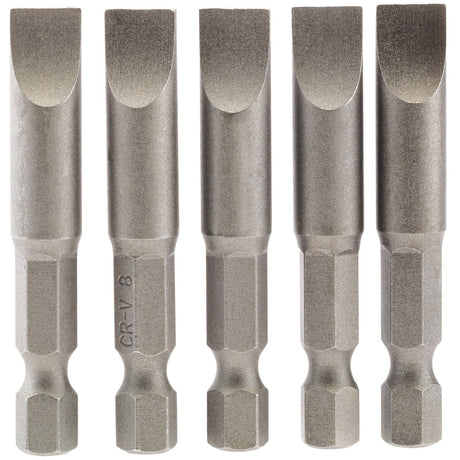 Draper Plain Slot Insert Bit, 8mm, 1/4" Hex, 50mm Long (Pack Of 5) - 50PS/5/B