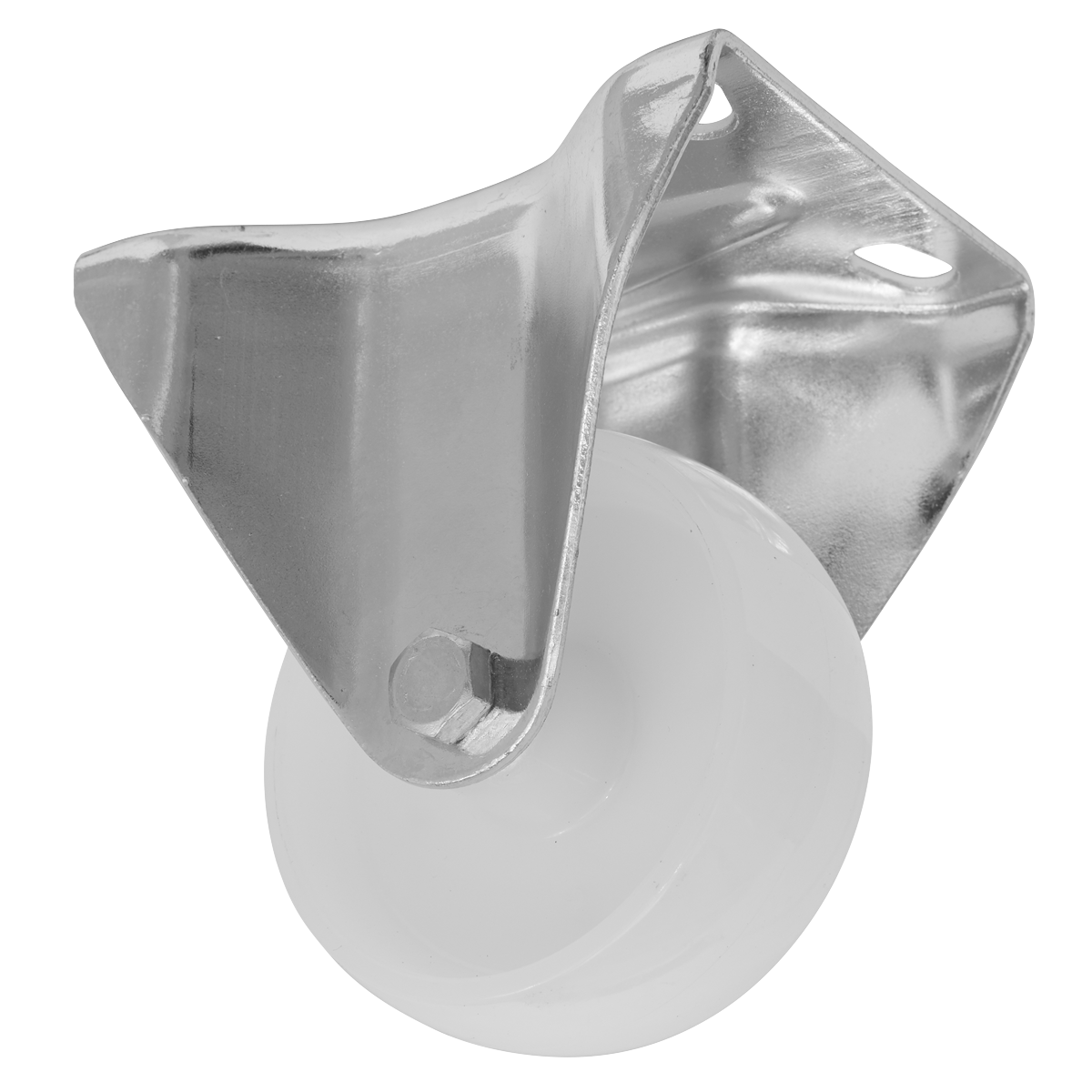 Heavy-duty fixed plate castor. Nylon wheel with cast aluminium core.