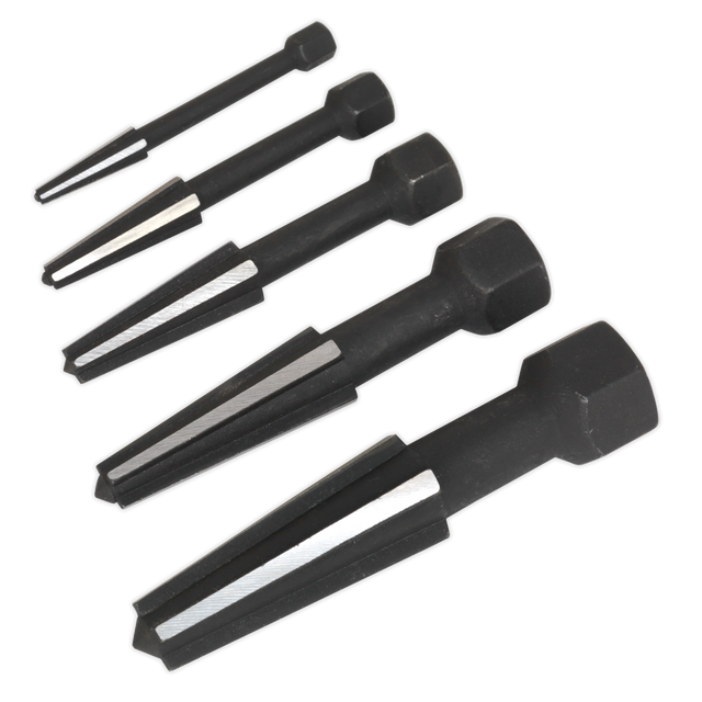 - Versatile 5-piece set featuring four double-edged cutting/gripping sides for maximum efficiency in screw extraction.