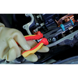 VDE Approved pliers manufactured from hardened and tempered drop-forged Chrome Vanadium steel. Ideal for technicians working on modern hybrid and electrical vehicles. Finely ground polished heads. Serrated jaws and induction-hardened cutting edges. Dual material comfort grip handles for comfort and control.